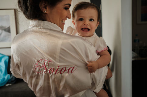 O casamento deles aconteceu na Igreja dos Capuchinhos, na Tijuca. Mais precisamente na gruta que tem ao lado da igreja. O local era aberto e por pouco não choveu, nada como um pouco de emoção. Foi uma cerimônia linda misturando o casamento e o batizado da Clara!